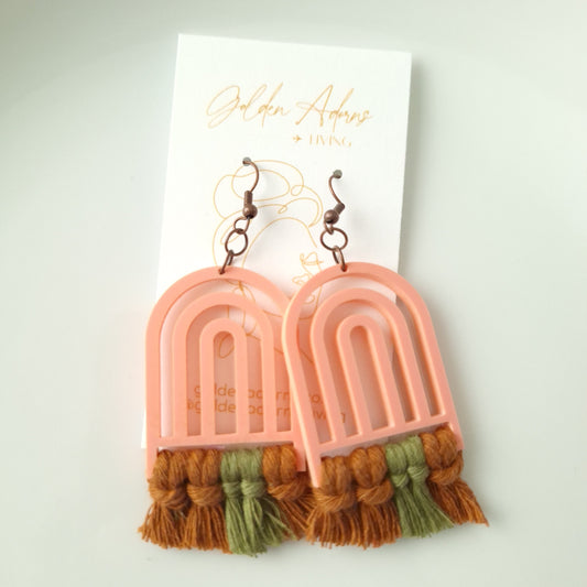 Coral & Brown Macrame Earrings- Vacation Inspired