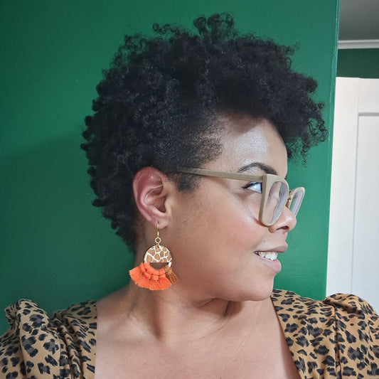 Tangerine Orange Wood Macrame Earrings- Vacation Inspired
