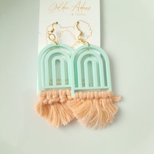 Pastel Mint Green Arch Macrame Earrings- Vacation Inspired