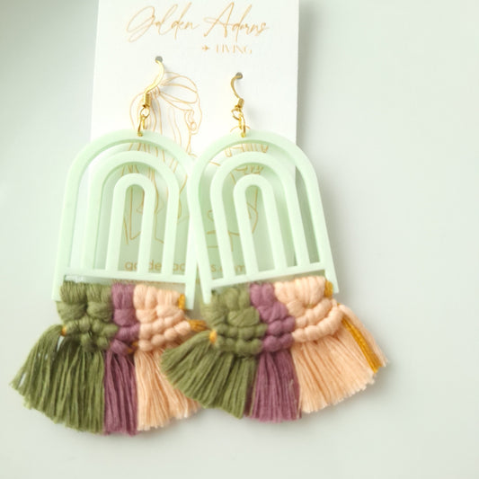 Melon & Olive Arch Macrame Earrings- Vacation Inspired