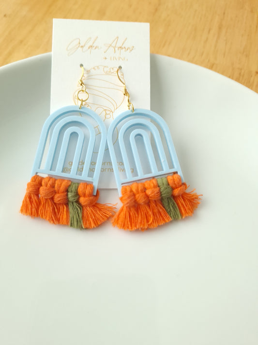 Sky Blue & Orange Macrame Earrings- Vacation Inspired