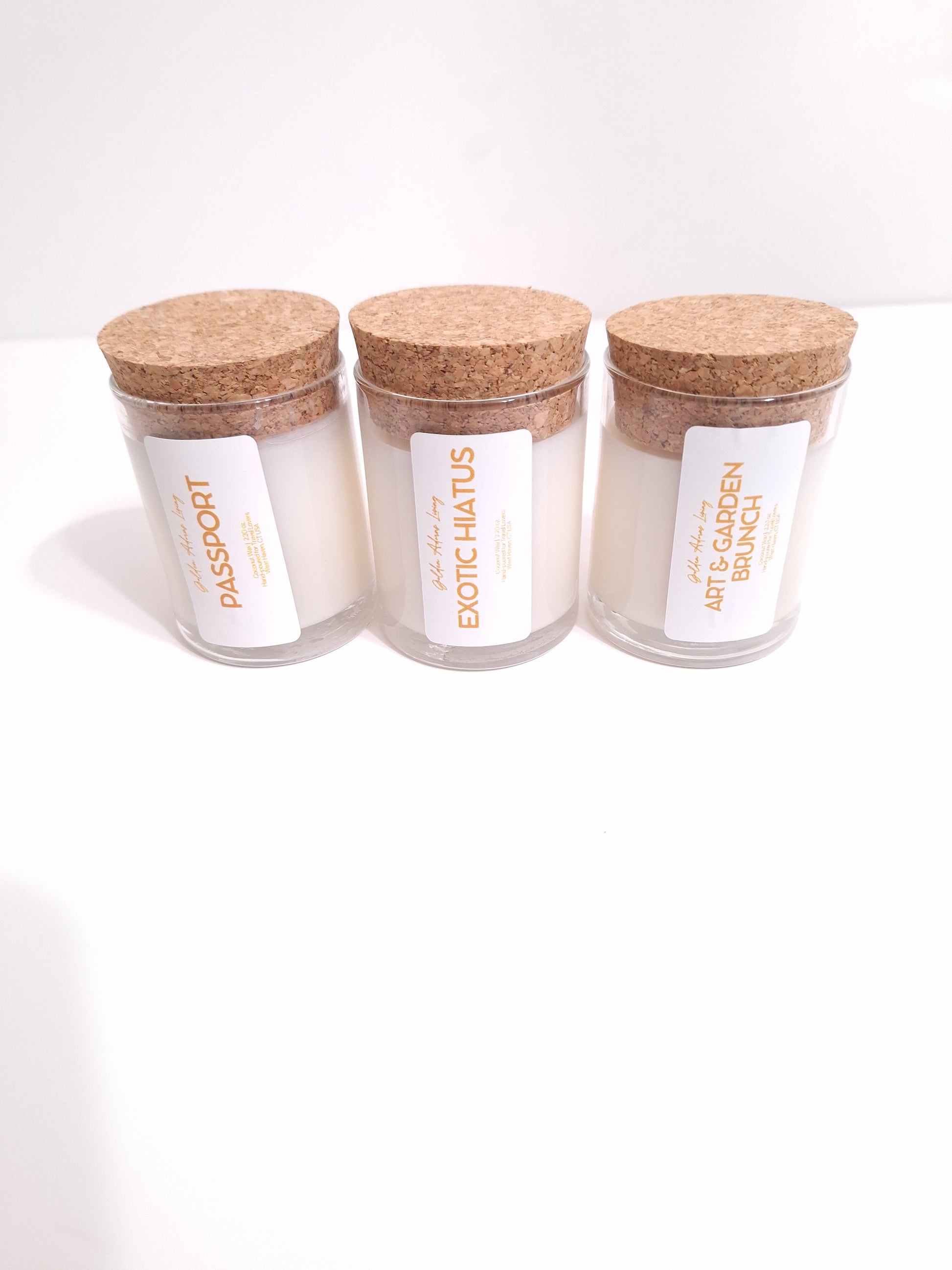Looking for a cute, thoughtful gift or just want to treat yourself? These mini candles are just the thing! Each comes in a stylish reusable glass container & cork lid so you can keep it with you wherever you go—and look good doing it.